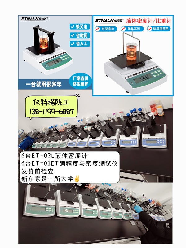 儀特諾6臺ET-03L液體密度計、6臺ET-01ET酒精濃度與密度測試儀奔赴湖南農(nóng)業(yè)大學