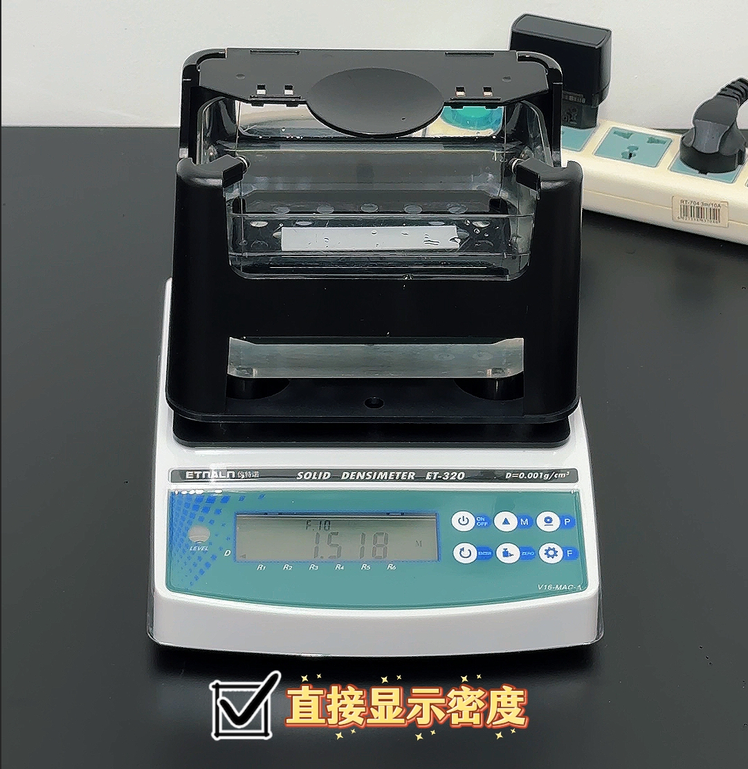 儀特諾ET-320系列電子密度計,基于阿基米德排水法的原理,結(jié)合高精度傳感器和智能算法,2步快速測量各類固體產(chǎn)品和材料的密度。