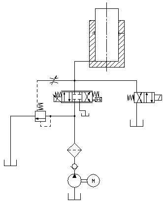 液壓原理如圖二所示,為負載適應(yīng)型進油節(jié)流調(diào)速系統(tǒng)。