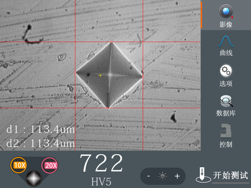 ? 嵌入式影像技術(shù)取代傳統(tǒng)測量目鏡,使用攝像頭+顯示屏模式,壓痕圖像,顯示屏直接顯示