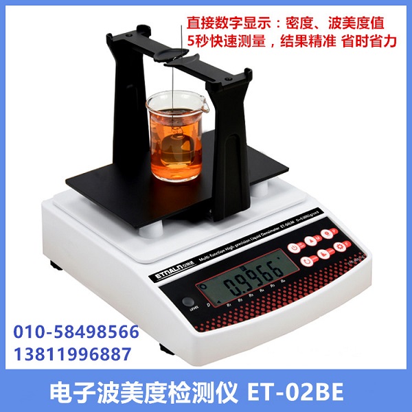 電子波美度計_高精度電子波美比重計ET-01BE,ET-02BE產(chǎn)品是根據(jù)阿基米德原理,自動顯示波美度Bé、密度值D ,測量精度高、快速、簡單;密度>1,<1 皆可測量。